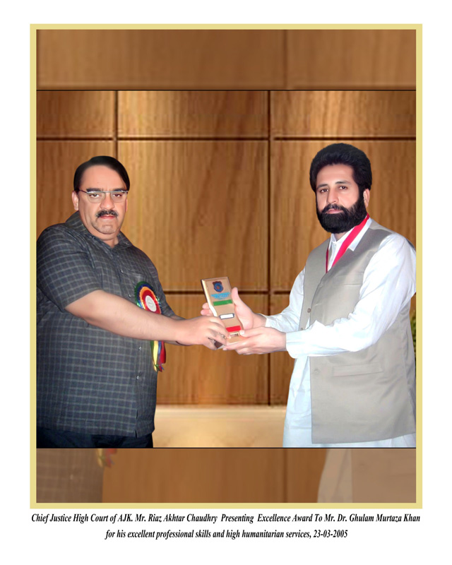Chief Justice High Court of AJK. Mr. Riaz Akhtar Chaudhry Presenting Excellence Award To Mr. Dr. Ghulam Murtaza Khan