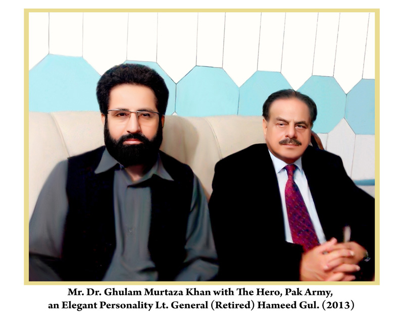 Mr. Dr. Gulam Murtaza Khan with The Hero, Pak Army, and Elegant Personality Lt. General (Retired) Hameed Gul. (2013)